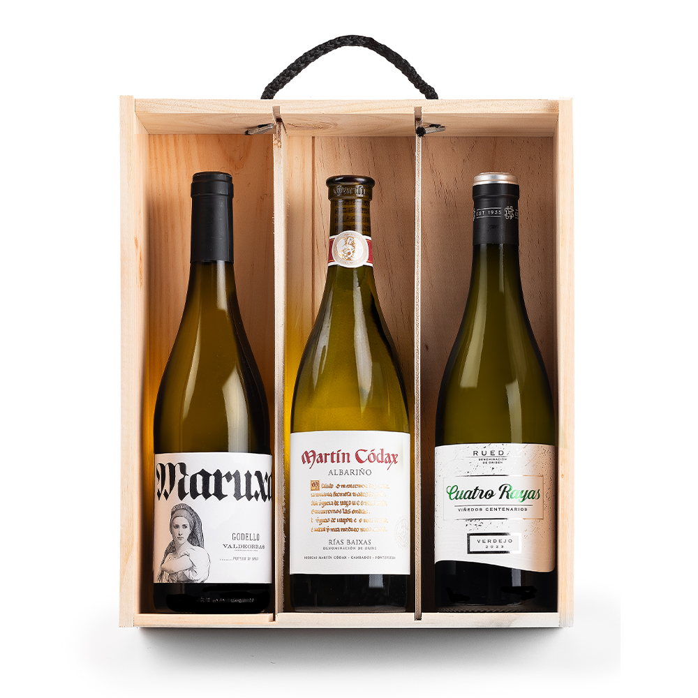 Esta selecion de vinos estan elaborados con diferentes variedades de uva blanca, como Albarño, Verdejo y Godello. Cada una aporta sus propias notas aromáticas y características en boca. Los vinos provienen de distintas regiones vitivinícolas.
