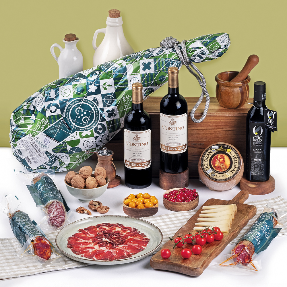 Continente a elegir: Caja de Madera o Caja Jamonera Forrada Doble Tapa Geltex GONDIAZ Gran Lujo.